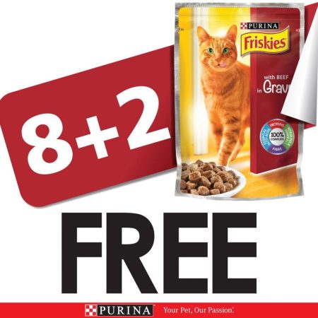 Purina Friskies Beef in Gravy Wet Cat Food Pouch 85g ( 8 + 2 Free )